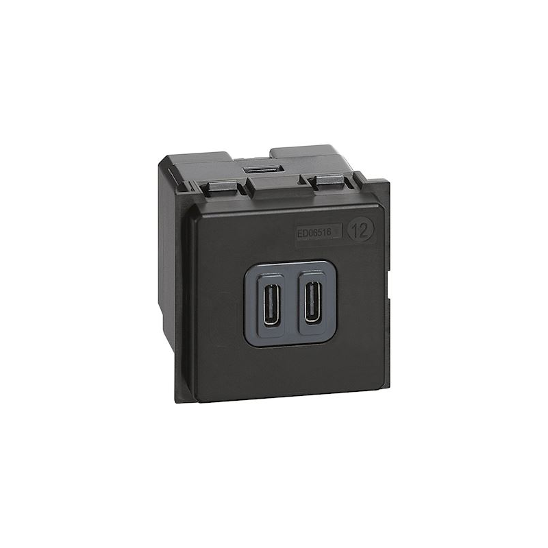 Socket outlet surface with plug USB type-C Living Now 2 modules - black
