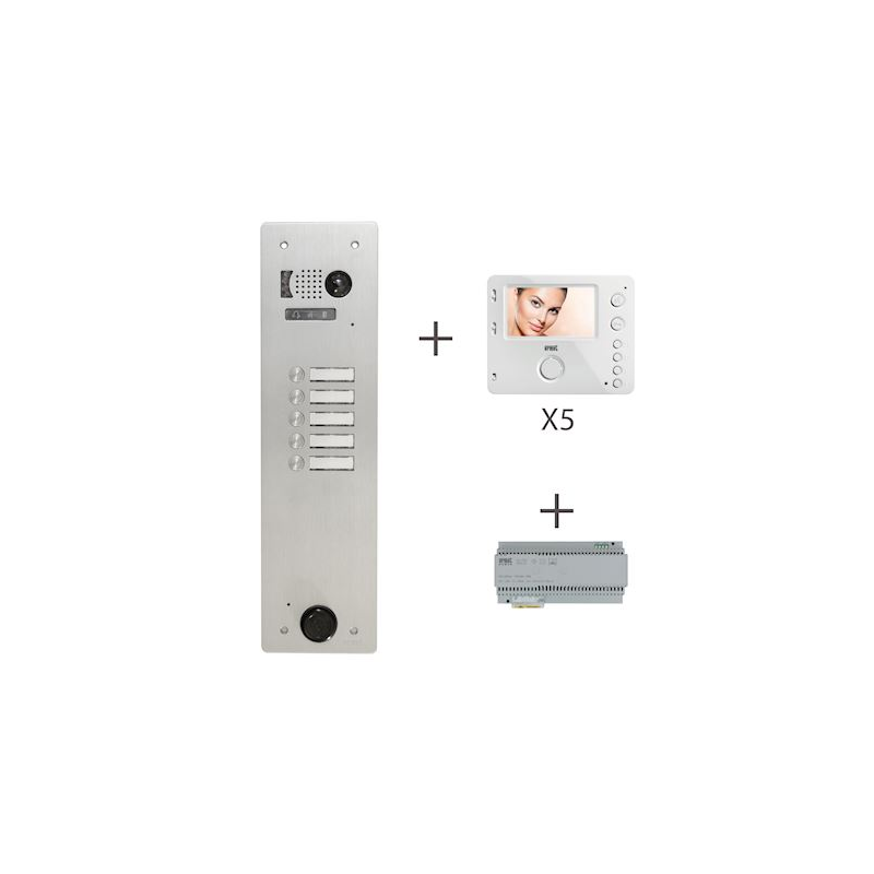 Kit video pre-programmed 2voice plate and monitors 1 row 5 buttons
