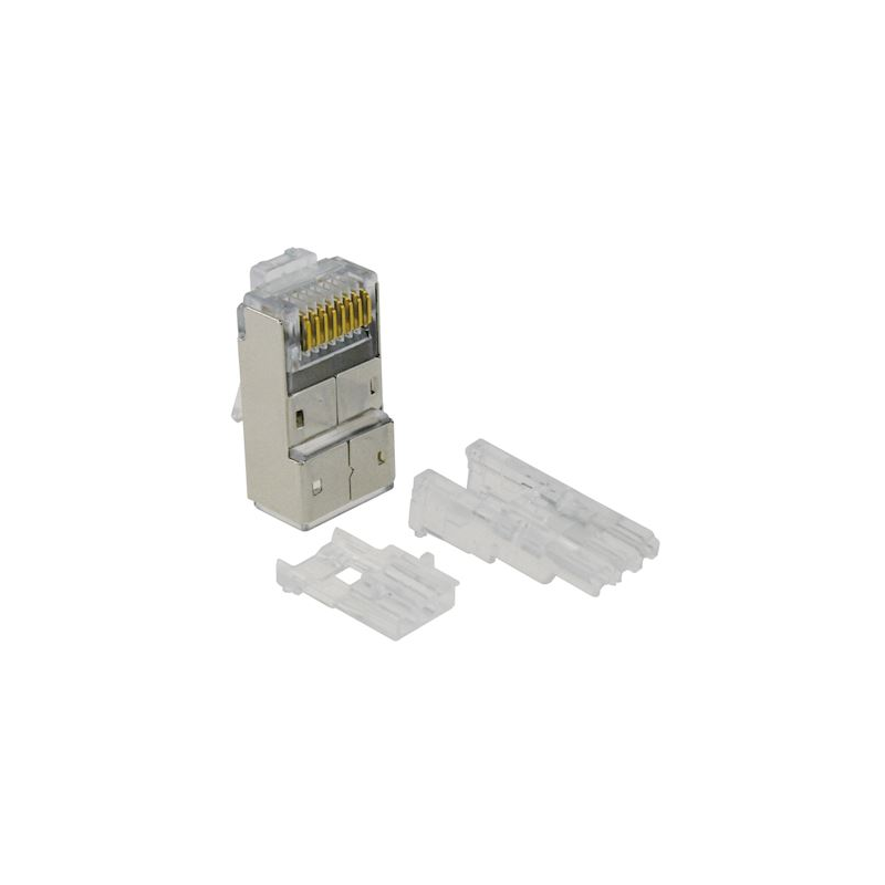 Pack of 10 modular connectors 8 points / 8 contacts CAT5e/CAT6 (2 parts)