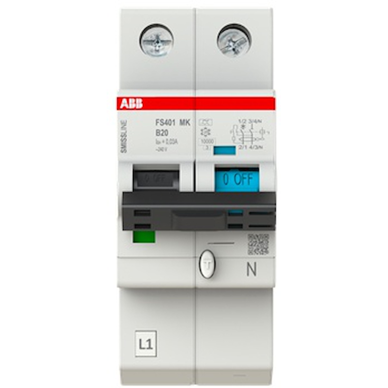 DS201 differential circuit breaker - 1P+N (to right)- 10A- CBE B- 6kA - 30mA -AC