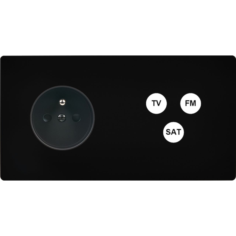 Switch plate 'M' Matt black triple horizontal 1 plug 1 plug 2 Media magnetic