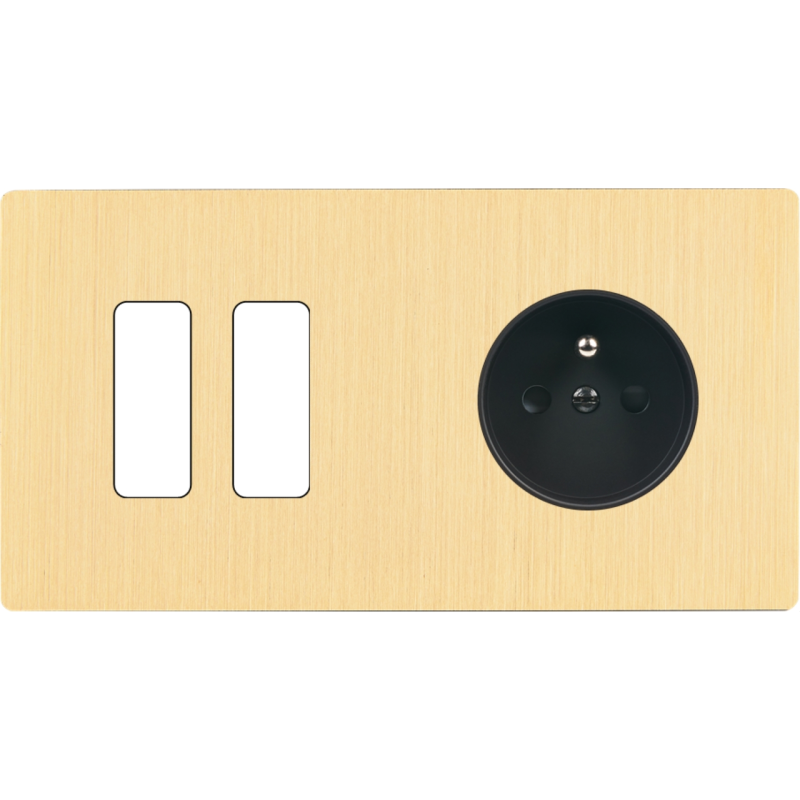 Switch plate 'M' brushed brass double horizontal 1 plug Schuko 1 button magnetic