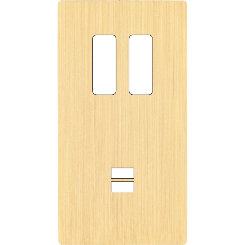 Switch plate 'M' brushed brass triple vertical 1 button 1 button 1 plug magnetic