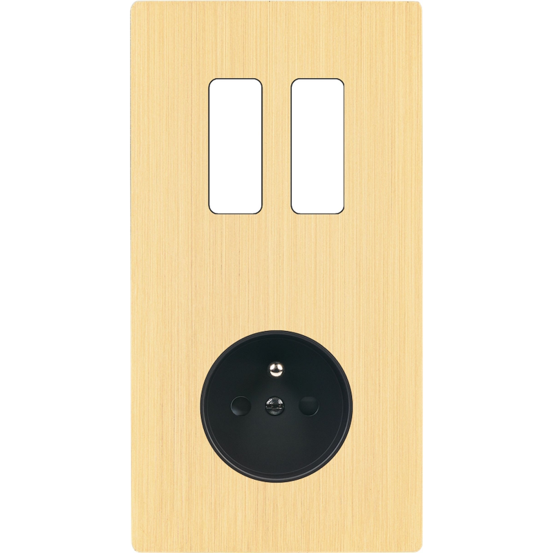 Switch plate 'M' brushed brass double horizontal 1 plug 2 Media magnetic
