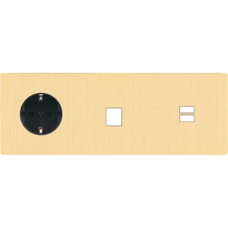 Switch plate 'M' brushed brass double horizontal 1 Media 1 plug Schuko magnetic