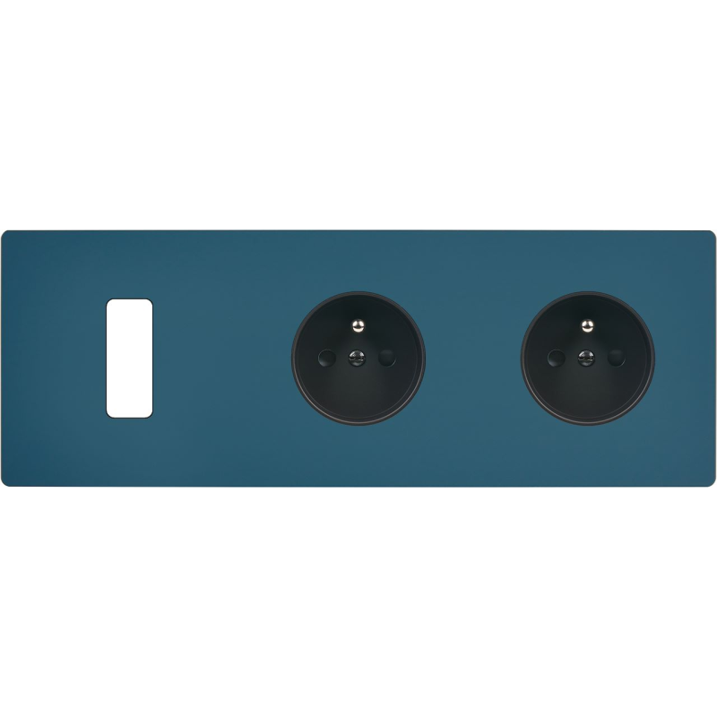 Switch plate 'M' Matt gray double horizontal 1 plug TV 1 charger USB magnetic