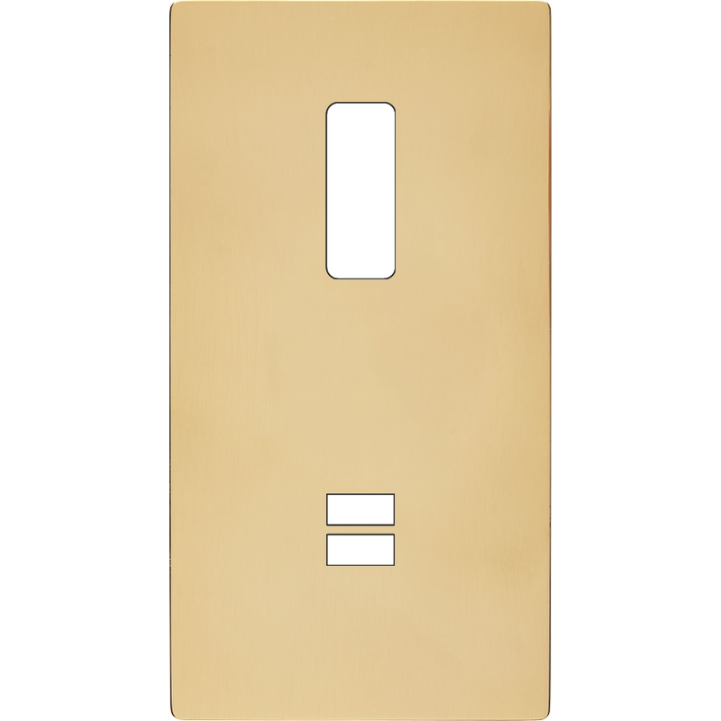 Switch plate 'M' varnished brass double vertical 1 button 1 plug Schuko magnetic