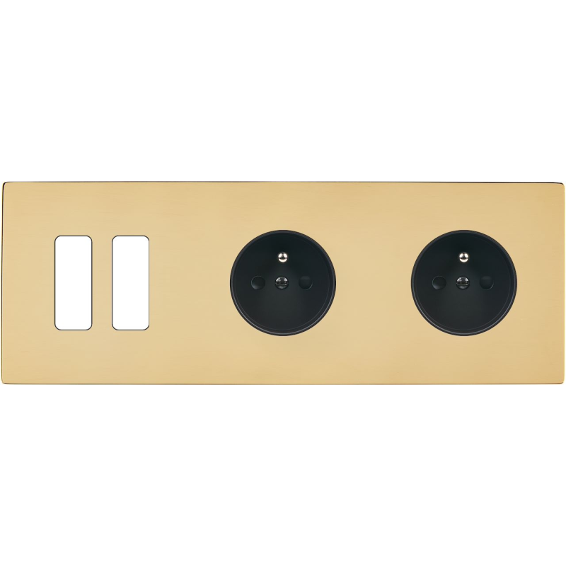 Switch plate 'M' varnished brass double horizontal 1 plug Schuko 1 plug Schuko magnetic