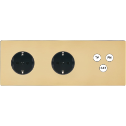 Switch plate 'M' brass EV triple horizontal 1 plug Schuko 1 plug Schuko 1 Media magnetic