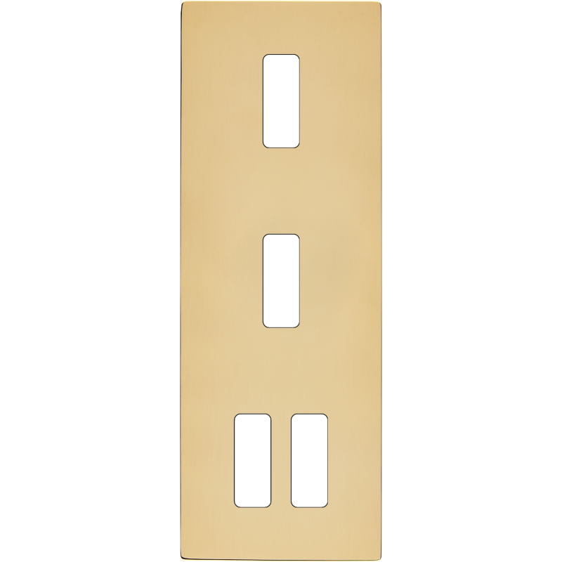 Switch plate M varnished brass triple horizontal 2 plugs Schuko 1 charger USB magnetic