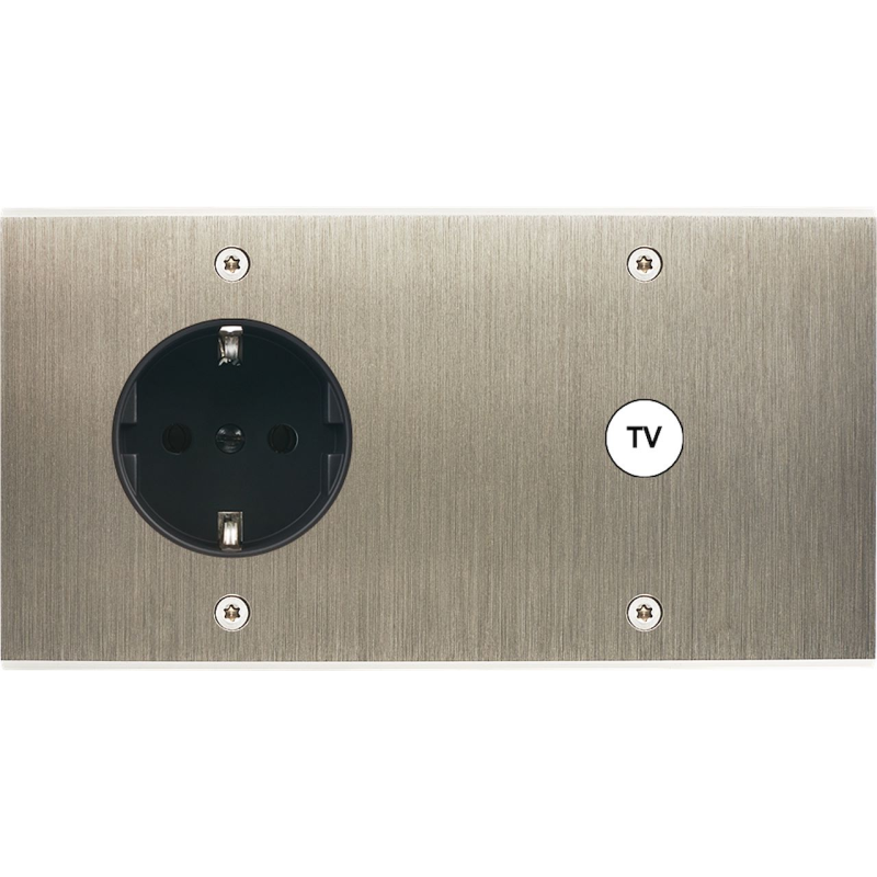 Switch plate Confidence brass brushed steel double horizontal M1 M1 screw