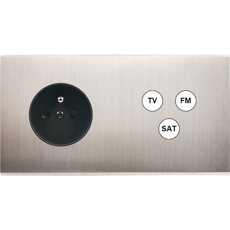 Switch plate Confidence brass nickel satin double plug Schuko clamshell
