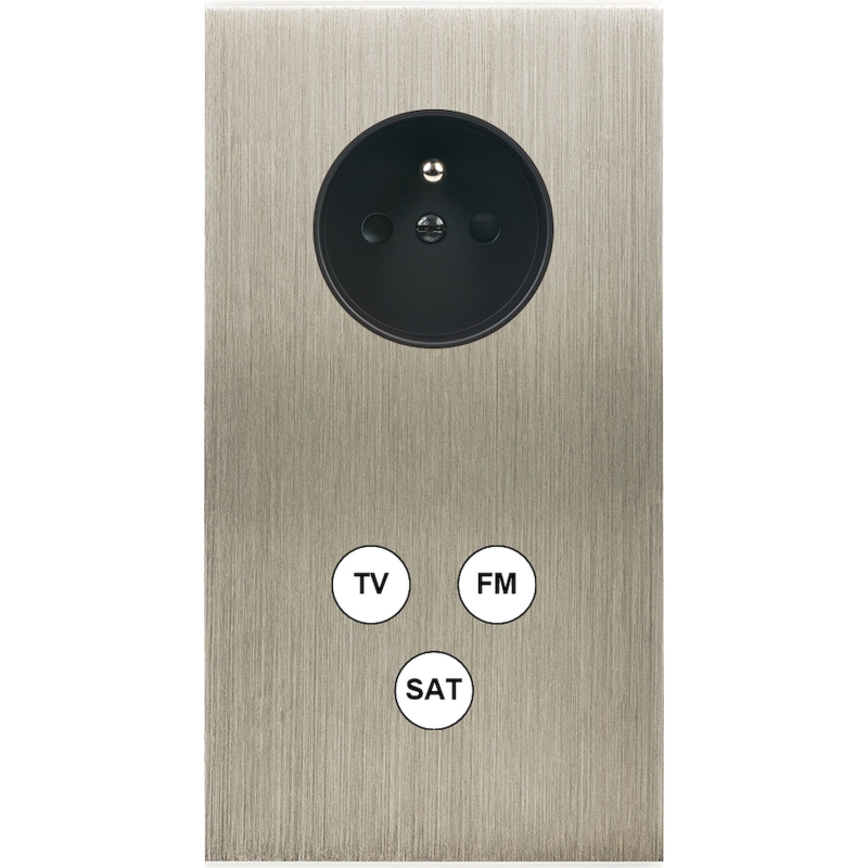 Switch plate Confidence brass brushed steel clamshell socket outlet - 190412M-CL