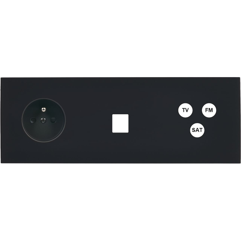 Switch plate M Matt black triple vertical 1 plug Schuko 1 Media 1 charger USB magnetic