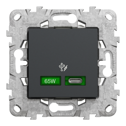Unica - plug double multiservices M-s - anthracite - mechanism alone