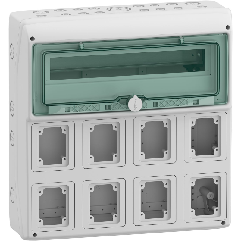 Mistral65H- box waterproof-4R x 18 modules-transparent door.-RAL7035-GWT 750°C