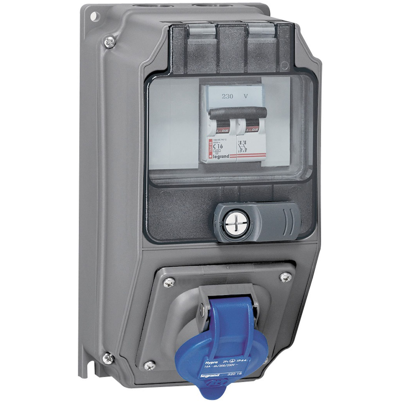 Caja P17 IP55 con interruptor y 1 enchufe 32A 2P+T - 200V~ a 250V~ 50Hz-60Hz