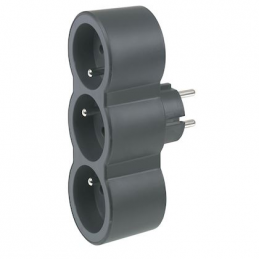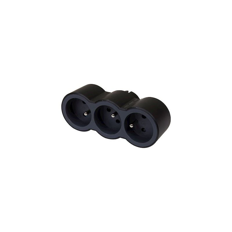 Extensor multienchufe caucho - 3x2P+T - 16A - anillo de suspensión - negro
