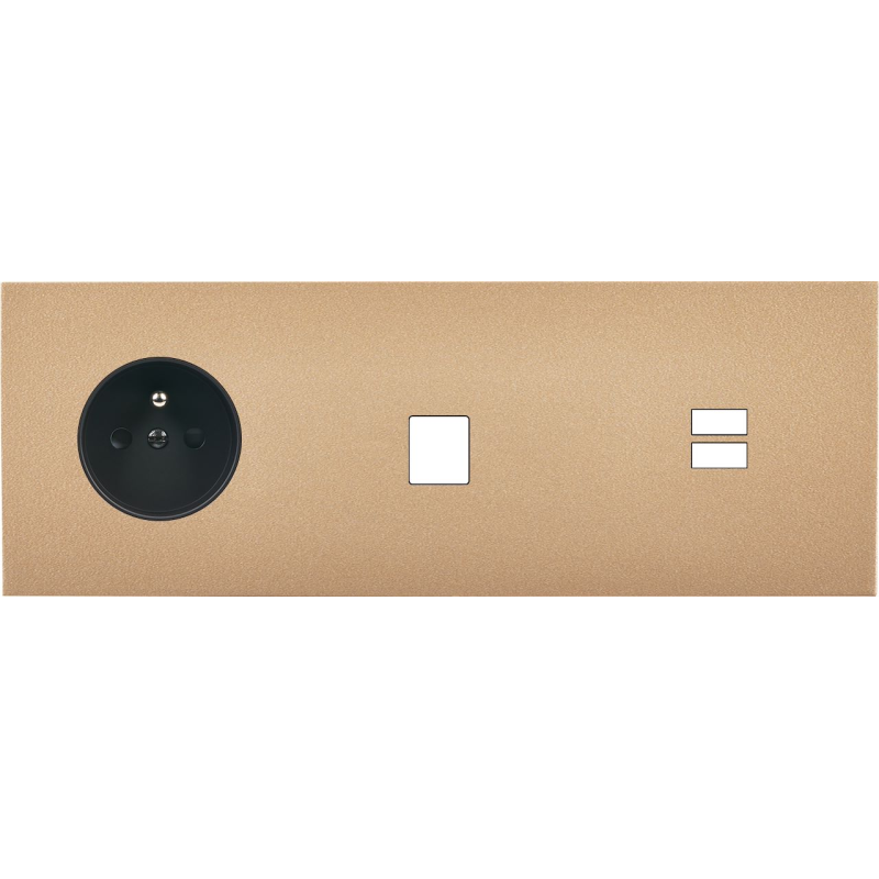 Placa del interruptor Désir dorado mate doble horizontal 2 medias TV-Fm-Sat