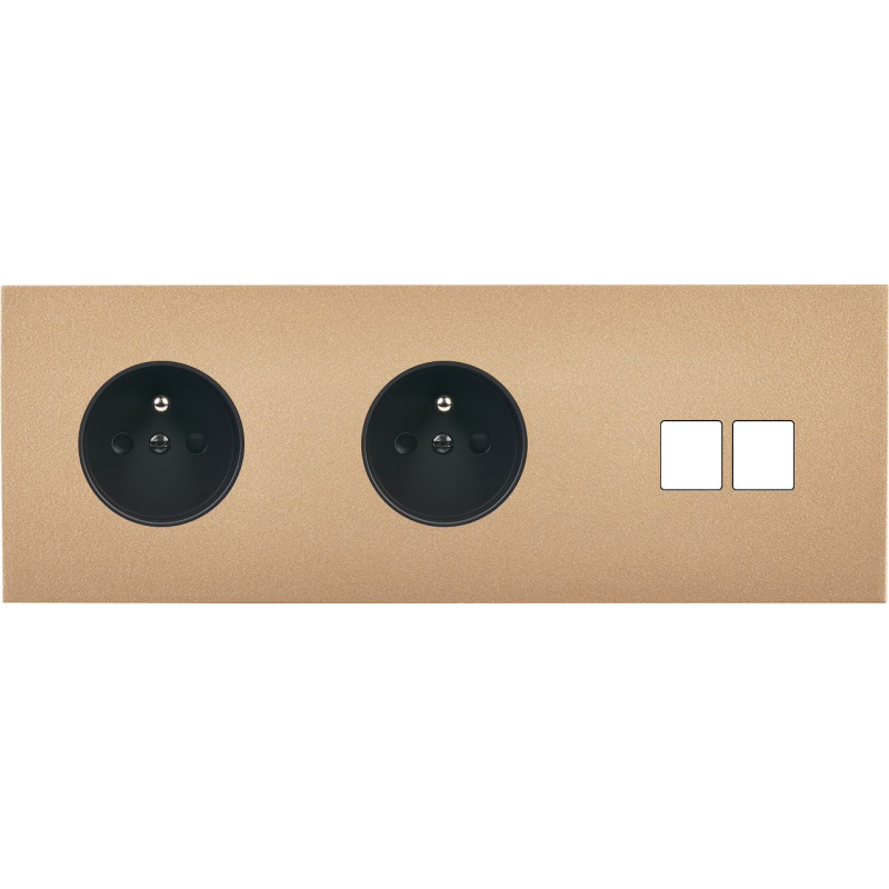 Placa del interruptor Désir dorado mate triple horizontal PC 2 medias TV-Fm-Sat