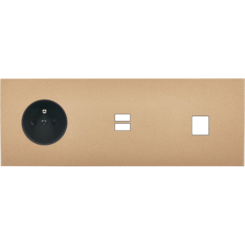 Placa del interruptor Désir dorado mate doble horizontal 2 medias TV-Fm-Sat