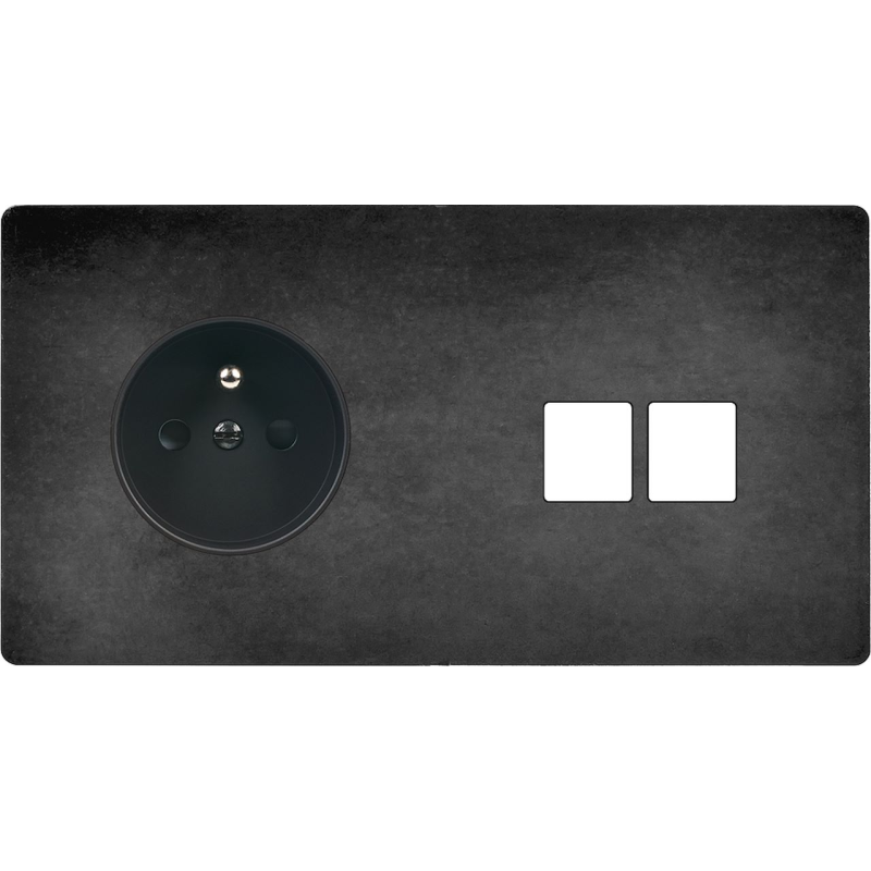 Placa del interruptor 'M' acero pintado doble horizontal 1 enchufe Schuko 2 Media magnético