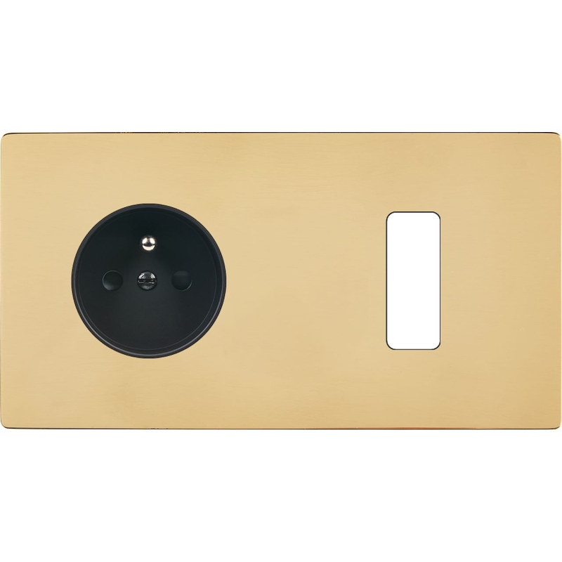 Placa del interruptor 'M' latón espejo doble horizontal 1 Media 1 enchufe Schuko magnético