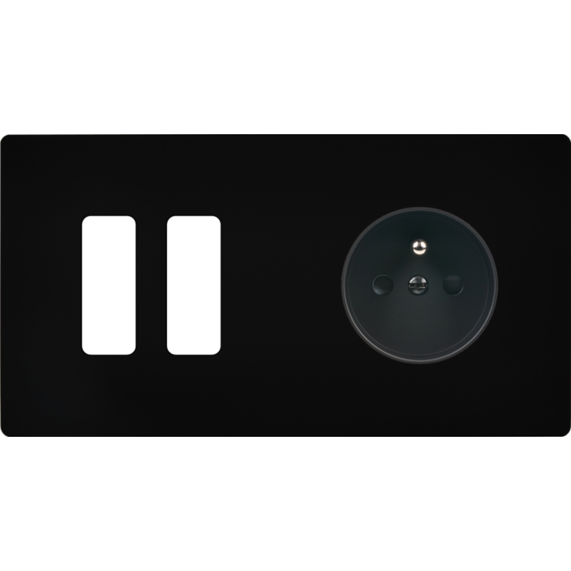 Placa del interruptor 'M' Negro mate doble horizontal 1 enchufe Schuko 1 TV-Fm-Sat magnético