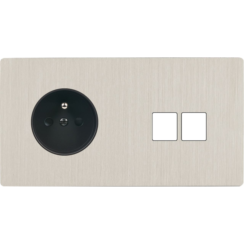 Placa del interruptor 'M' níquel cepillado doble horizontal 1 enchufe SC magnético