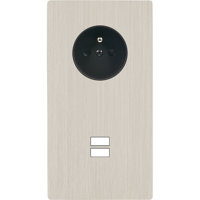 Placa del interruptor 'M' níquel cepillado doble horizontal 1 enchufe Schuko SC magnético