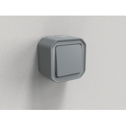 Control doble 3 funciones Plexo - 10A - IP55 - complete - en superficie - gris