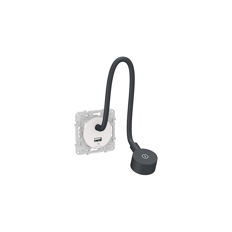 Odace - luz de lectura - con enchufe USB tipo A - 2,1A - aluminio