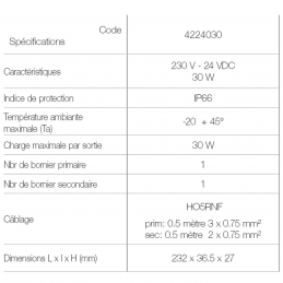 | Tension de sortie | 24 V |