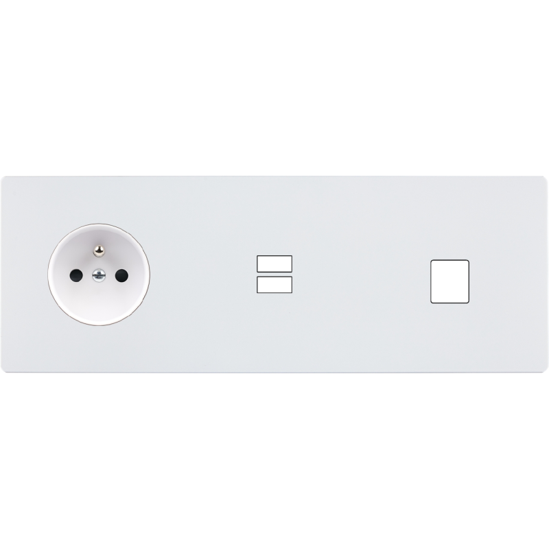 Façade 'M' blanc mat triple horizontale 1 bouton 1 prise 1 prise magnétique