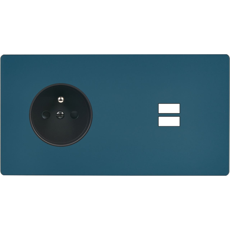 Façade 'M' Gris mat double horizontale 1 prise Schuko 1 prise Schuko magnétique