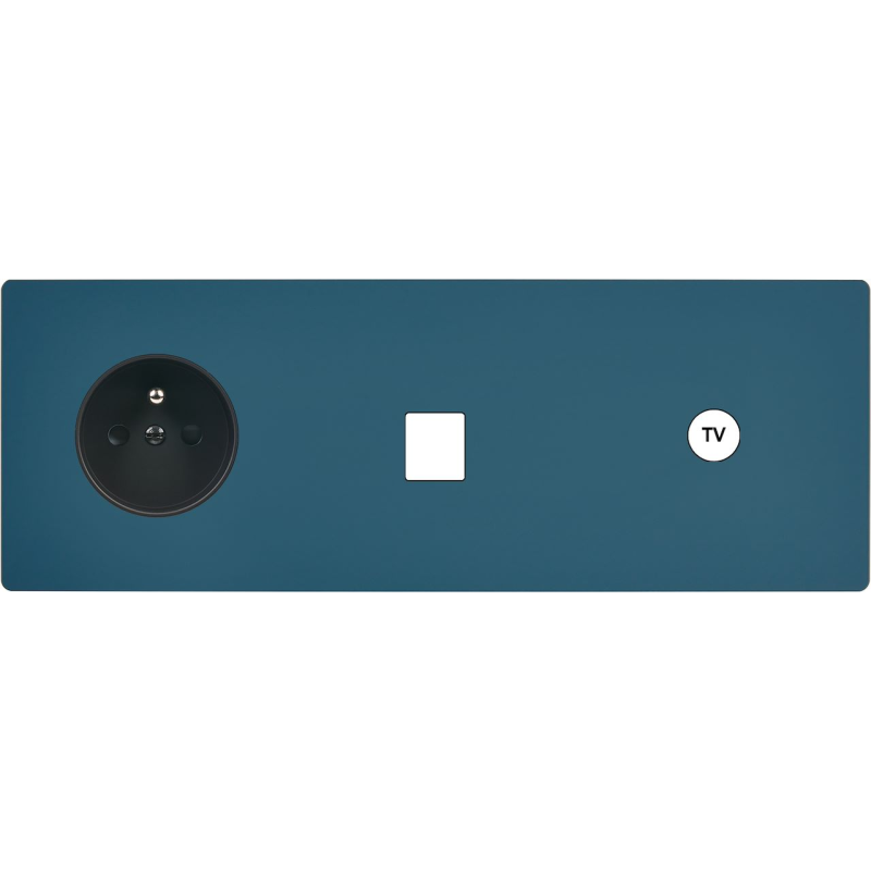 Façade 'M' Gris mat triple horizontal 1 prise Schuko 1 Media 1 prise TV magnétique