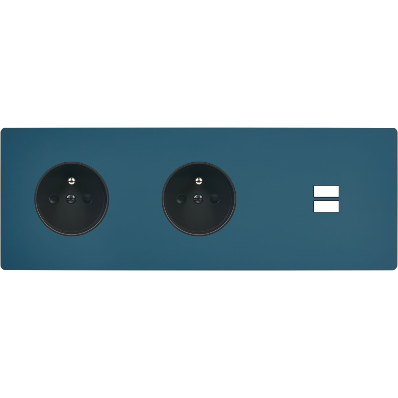 Façade 'M' Gris mat double horizontale 1 prise Schuko 1 chargeur USB magnétique