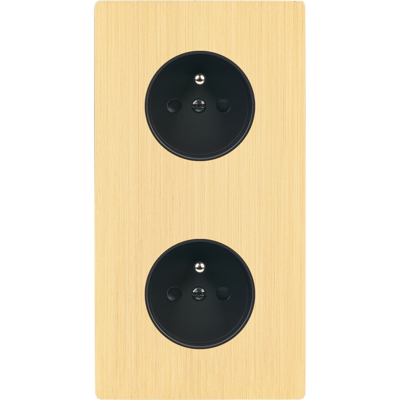 Façade 'M' laiton brossé double horizontal 1 prise Schuko 1 prise Schuko magnétique