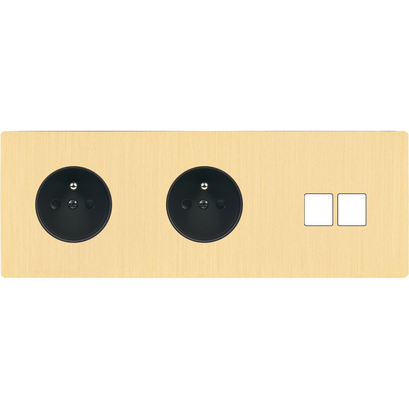 Façade 'M' laiton brossé triple horizontale 1 bouton 2 prises Schuko magnétique