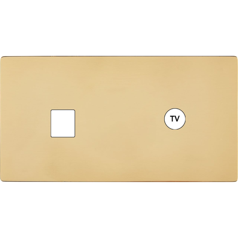 Façade 'M' Laiton Miroir Double Horizontale 1 Prise Schuko 1 Prise Tv magnétique