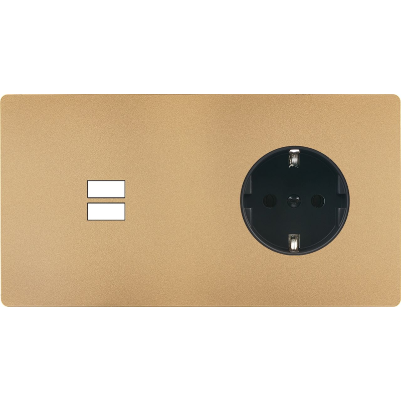 Façade 'M' laiton sable double horizontal 1 prise Schuko 1 prise Schuko magnétique
