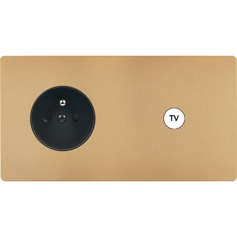 Façade 'M' laiton sable triple horizontale 2 prises Schuko 1 TV-Fm-Sat magnétique