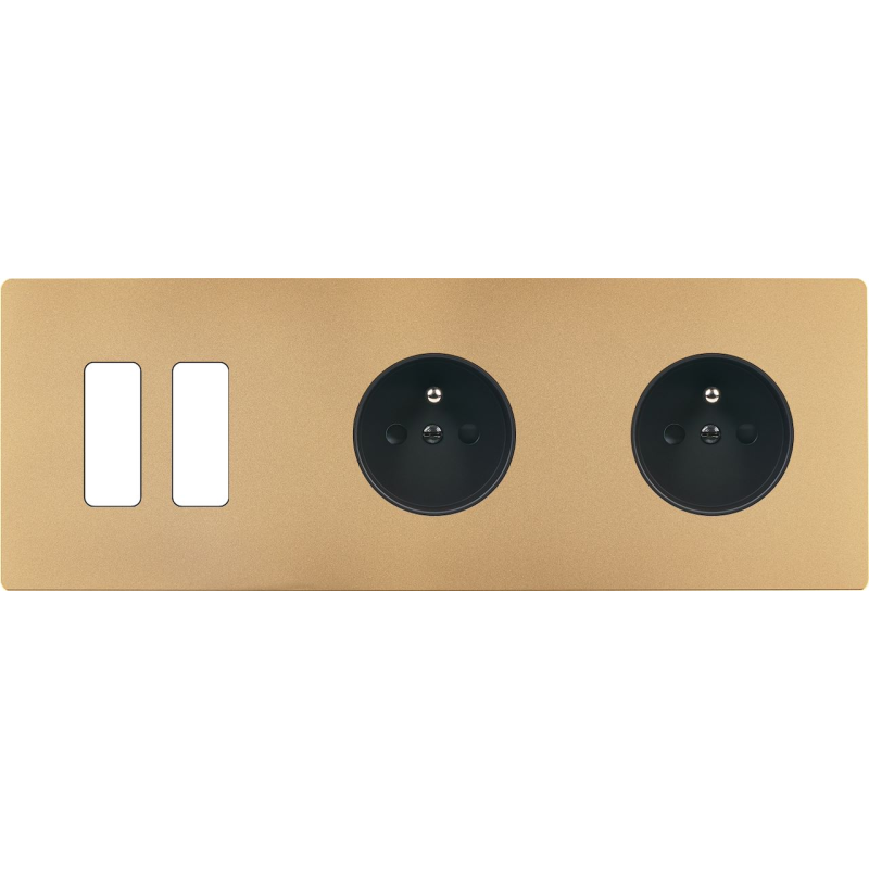 Façade 'M' laiton sable triple horizontale 2 boutons 2 prises Schuko magnétique