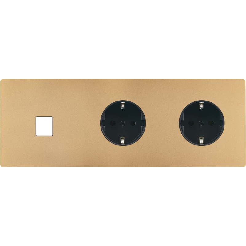 Façade 'M' laiton sable double horizontale 1 Media 1 prise Schuko magnétique