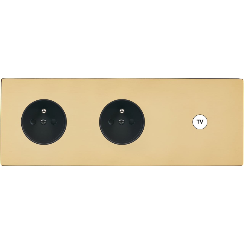 Façade 'M' laiton verni triple horizontal 1 prise Schuko 1 Media 1 prise TV magnétique