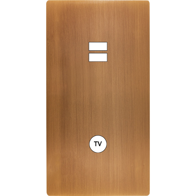 Façade 'M' Laiton Vieux Bronze Double Horizontale 1 Prise Tv 1 Media magnétique