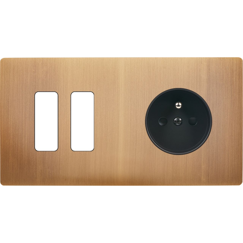 Façade 'M' laiton Vieux bronze double horizontale 1 prise 1 prise TV magnétique