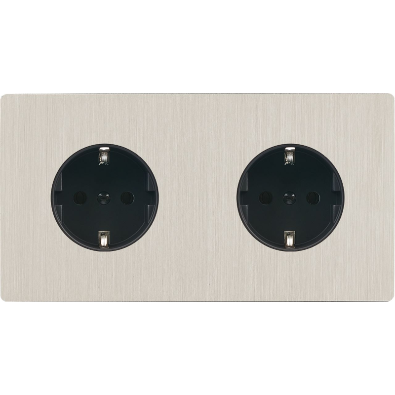 Façade 'M' nickel brossé double horizontale 1 prise Schuko 1 prise TV magnétique
