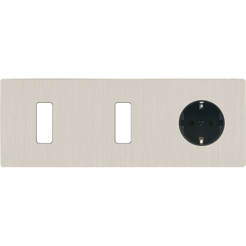 Façade 'M' nickel brossé triple horizontal 2 prises Schuko 1 prise Schuko magnétique