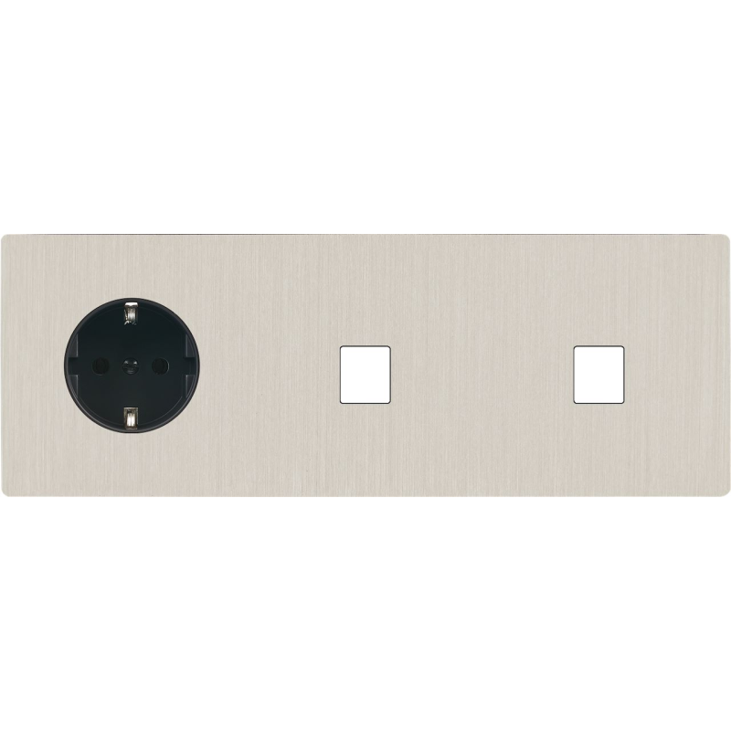 Façade 'M' nickel brossé triple horizontale 1 bouton 2 prises Schuko magnétique